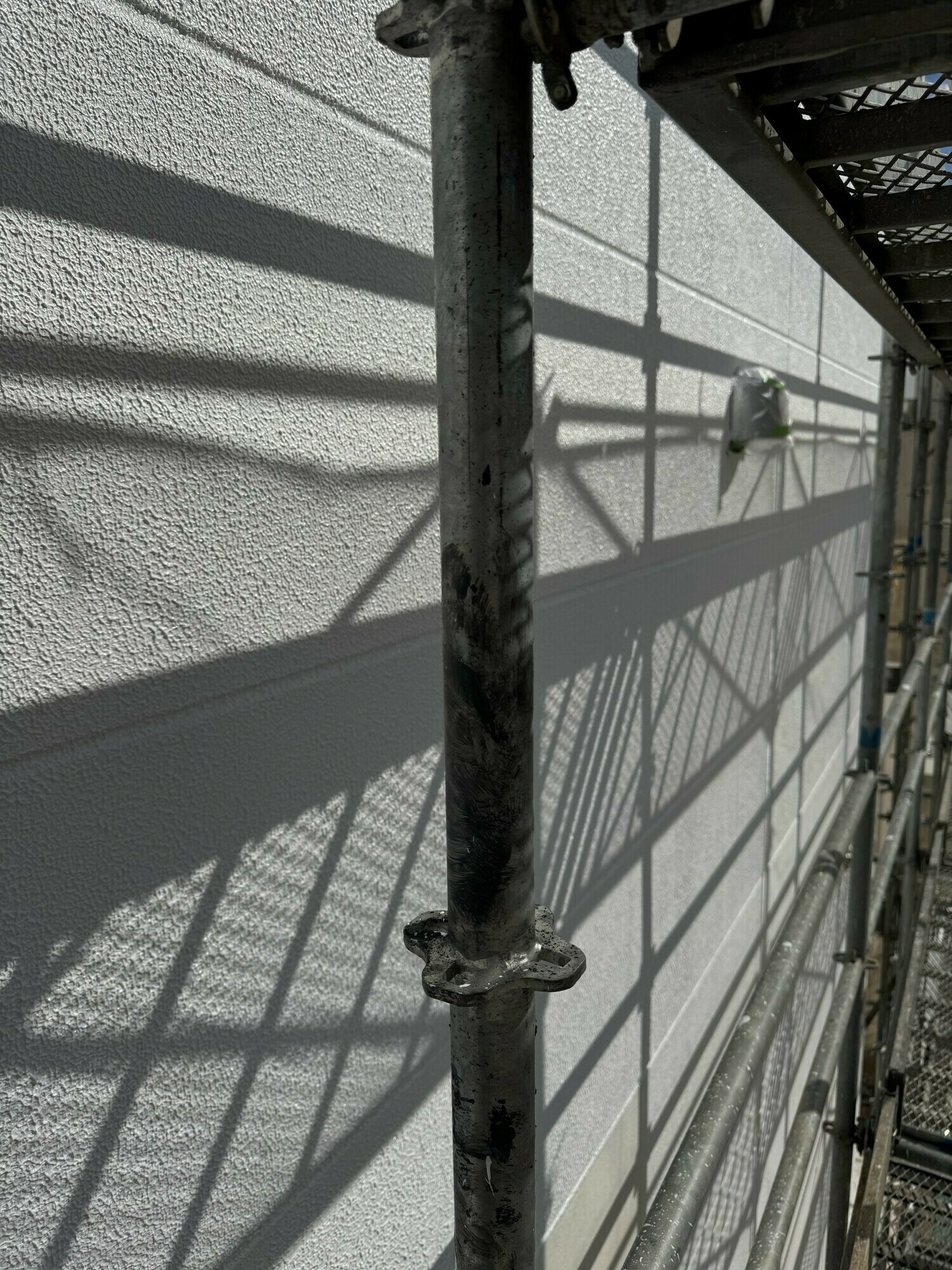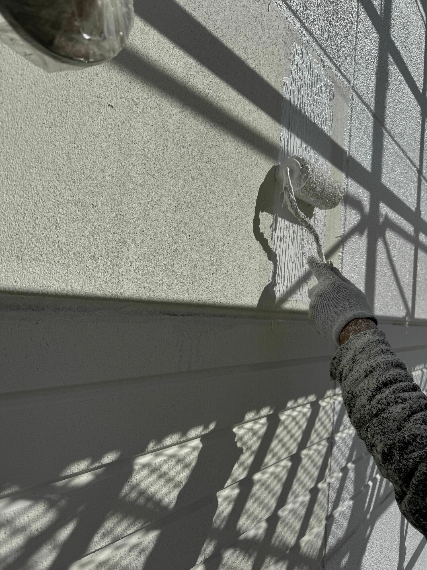 特殊なローラーを使い模様付けしています。塗膜に厚みをつけてひび割れに強い外壁をつくります。